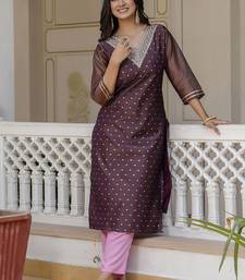 Shimmer silk purple casual wear embroidery work readymade kurti