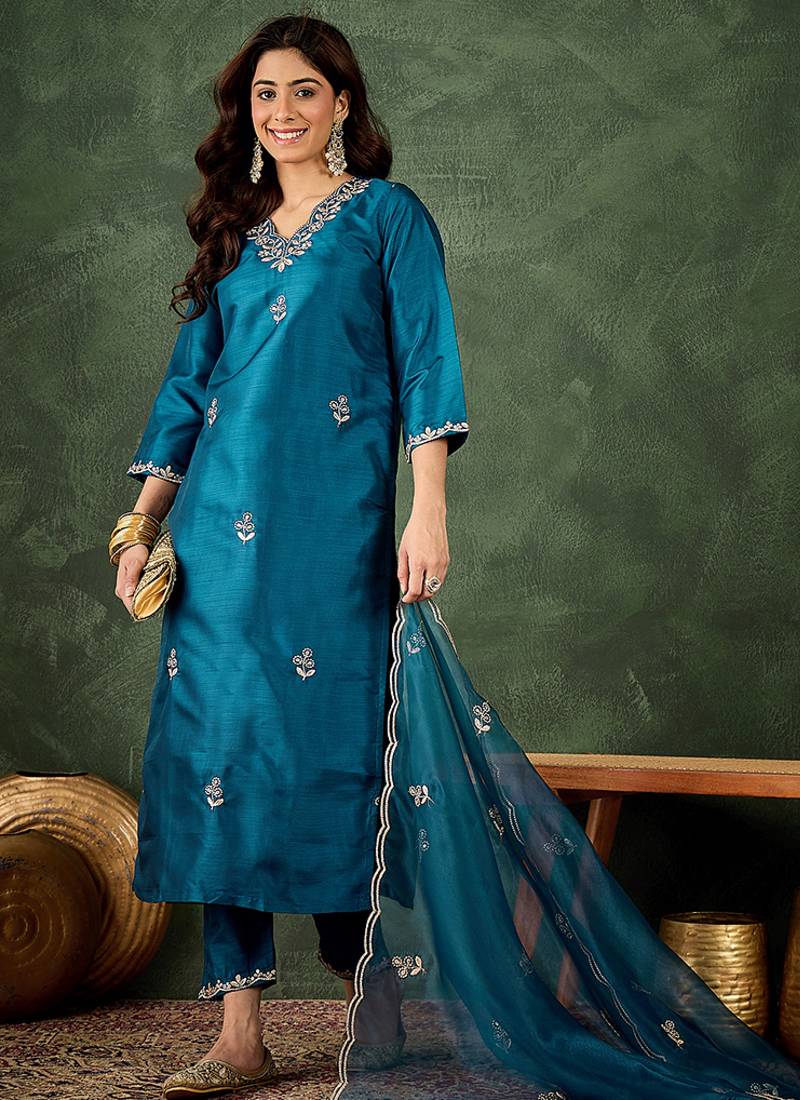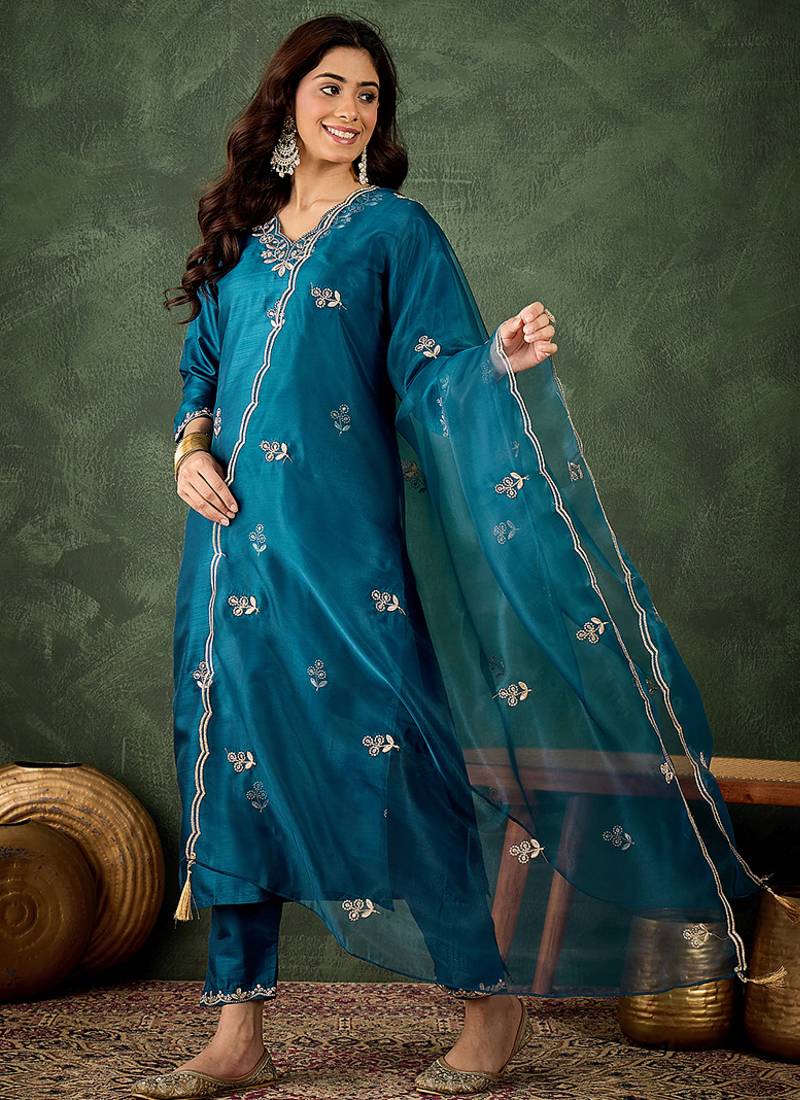 | Product Name | Silk Blend Blue Casual Wear Embroidery Work Kurta Set | |