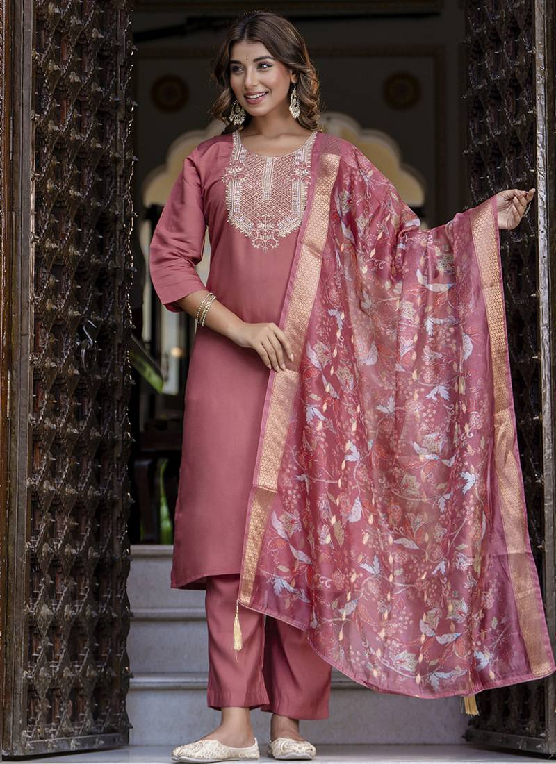 | Product Name | Silk Blend Dusty Rose Party Wear Embroidery Work Kurta Set | |