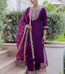 | Product Description | Silk Blend Magneta Casual Wear Embroidery Work Readymade Salwar Suit |