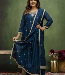 | Product Description | Stay Classy With This Navy Blue Silk Blend Salwar Suit, Featuring Delicate Embroidery Work. Perfect For Casual Wear, It Strikes The Right Balance Between Comfort And Ethnic Charm. |