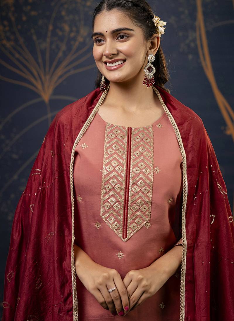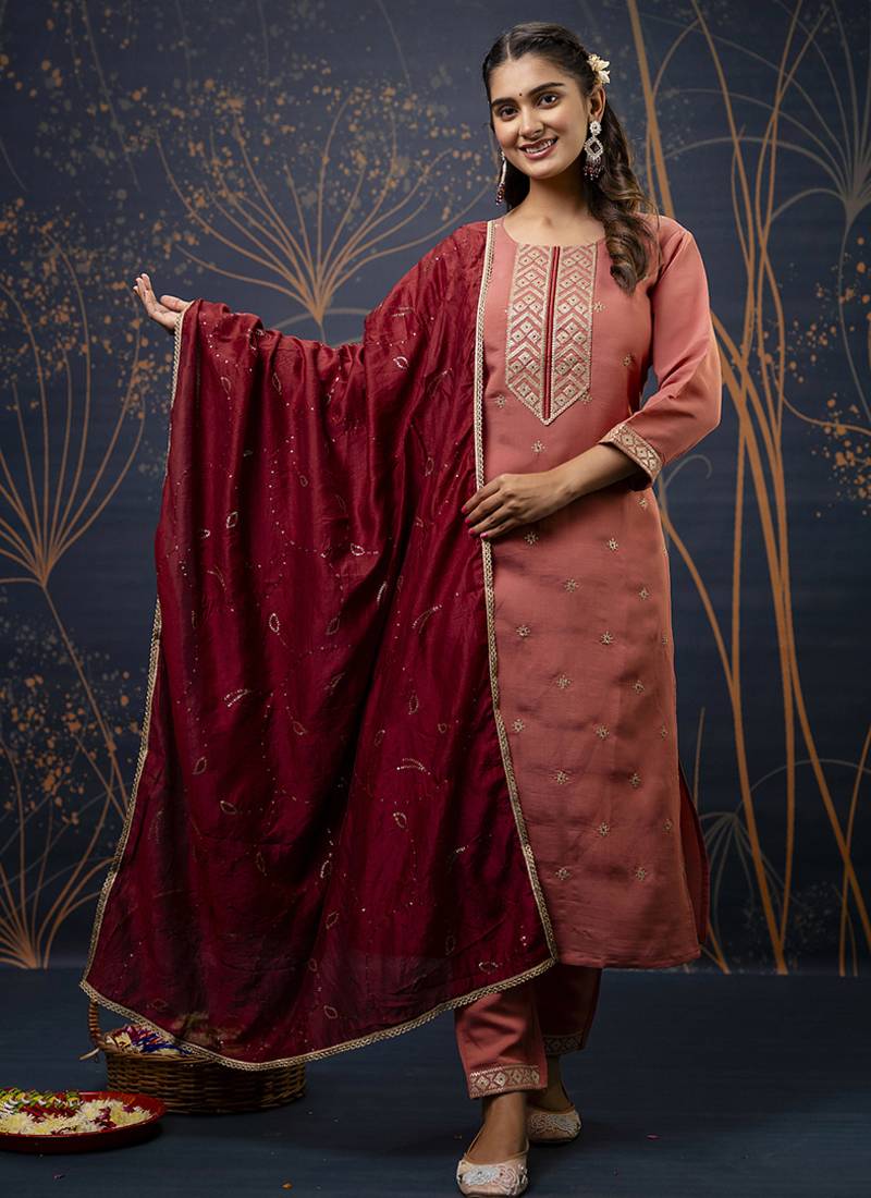 | Product Name | Silk Blend Peach Party Wear Embroidery Work Kurta Set | |