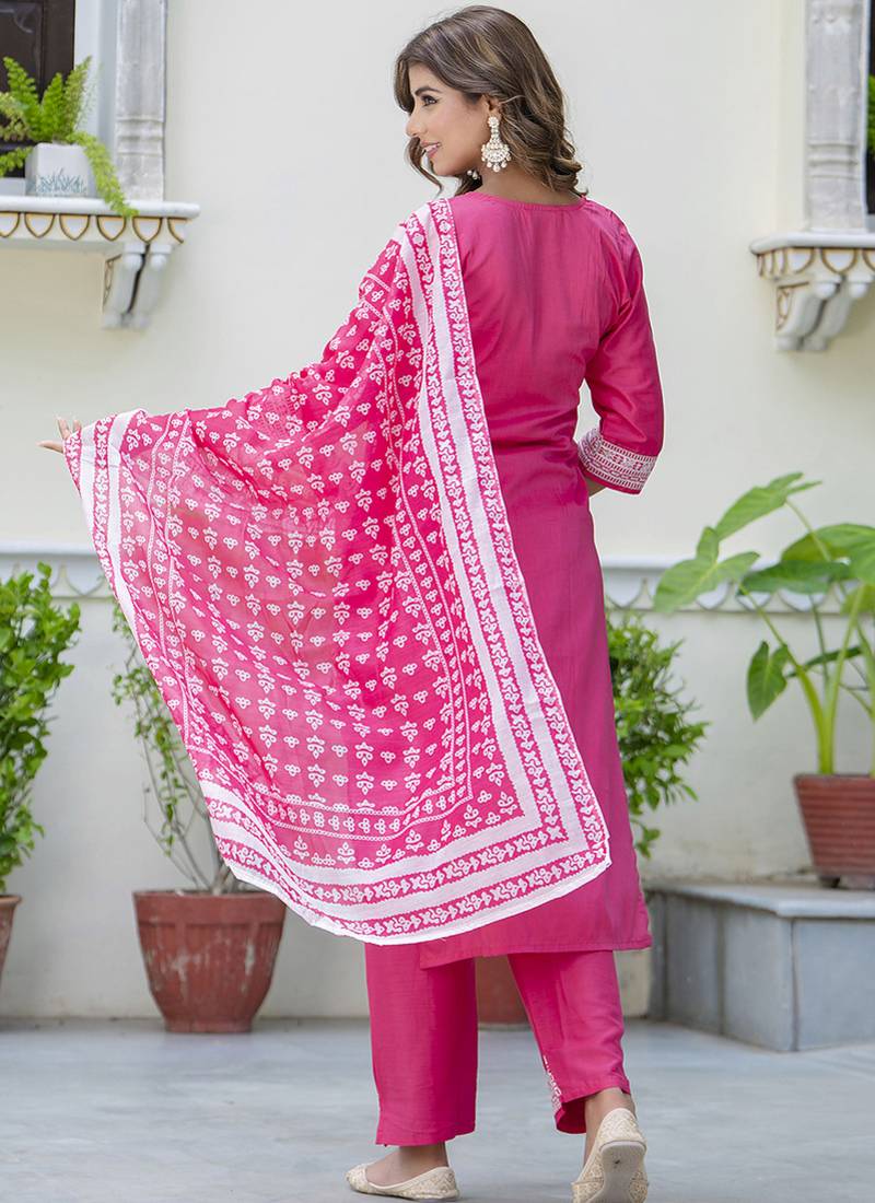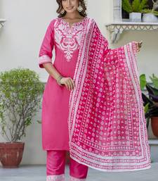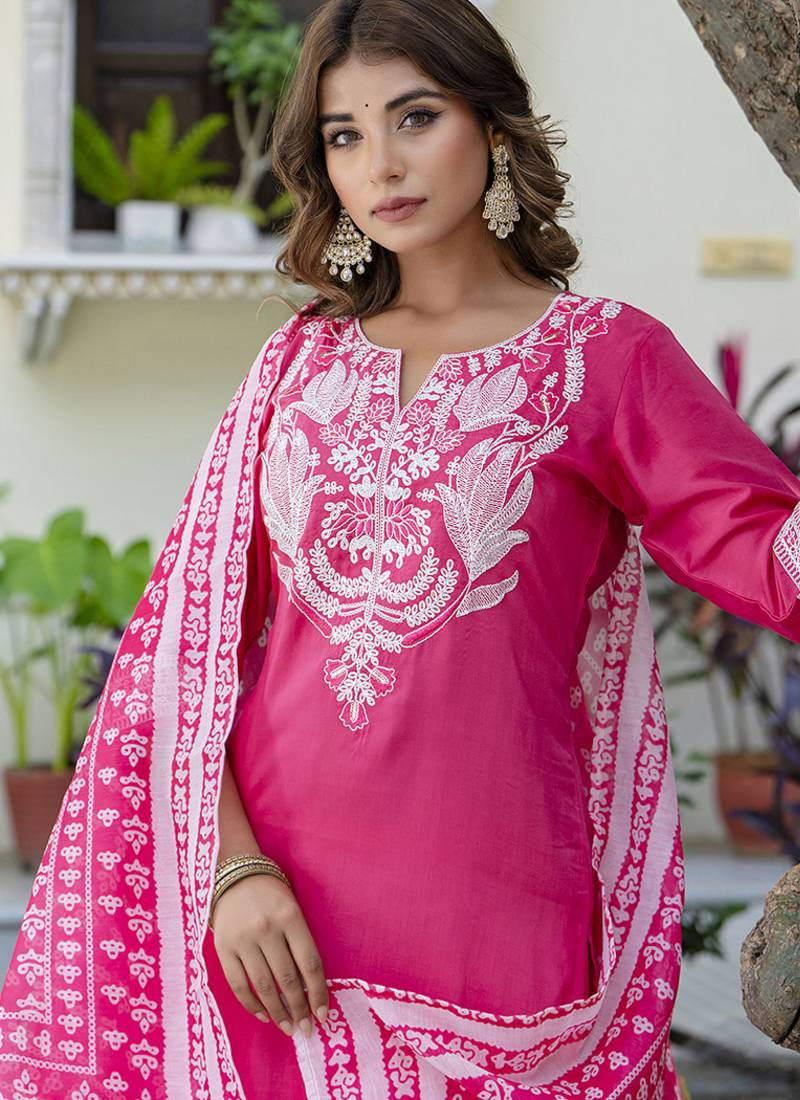 | Product Description | Silk Blend Pink Casual Wear Embroidery Work Readymade Salwar Suit |