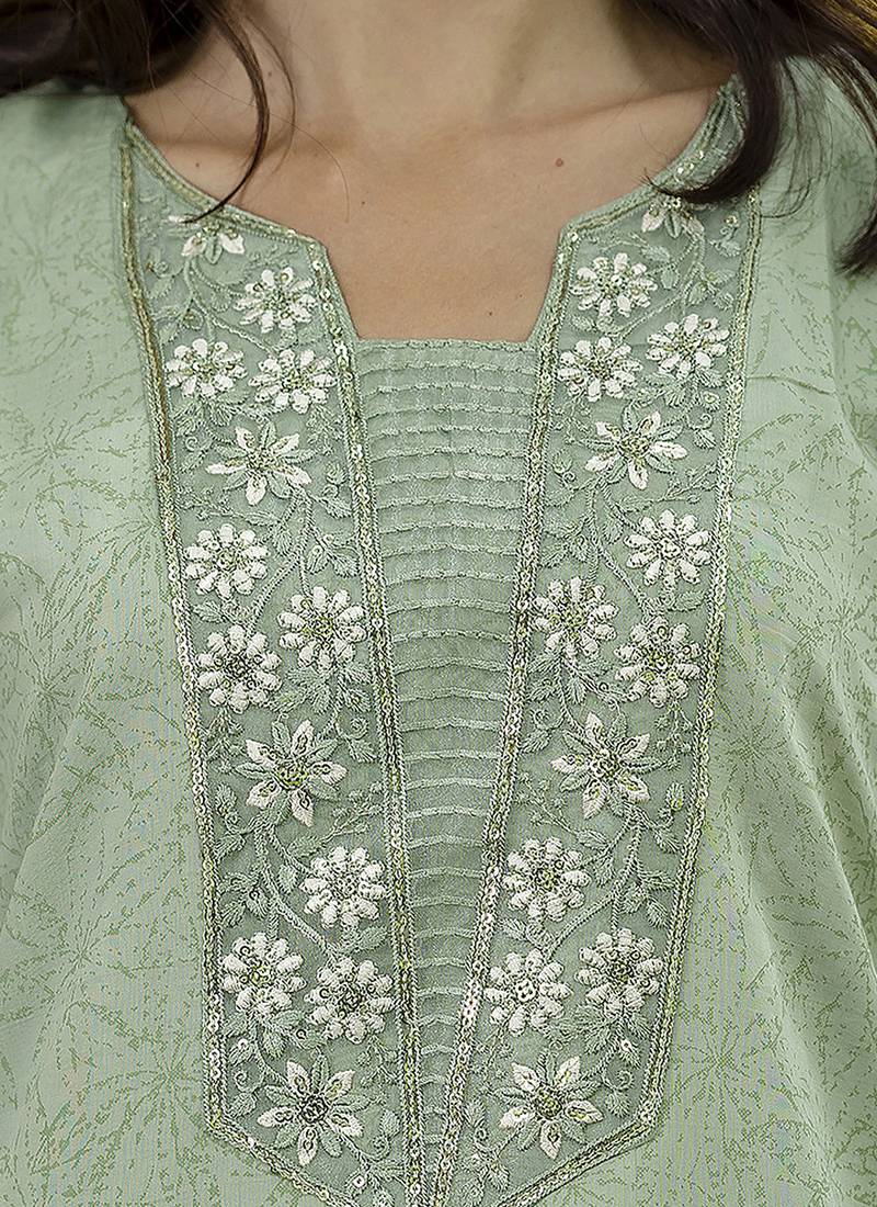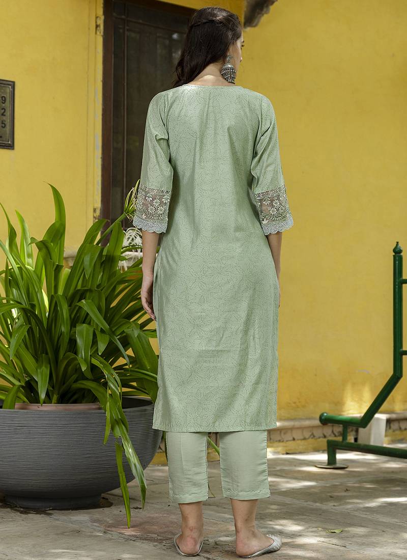 | Product Name | Silk Blend Pista Casual Wear Embroidery Work Kurta Set | |