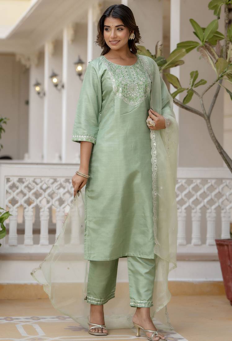 | Product Name | Silk Blend Pista Casual Wear Embroidery Work Kurta Set | |