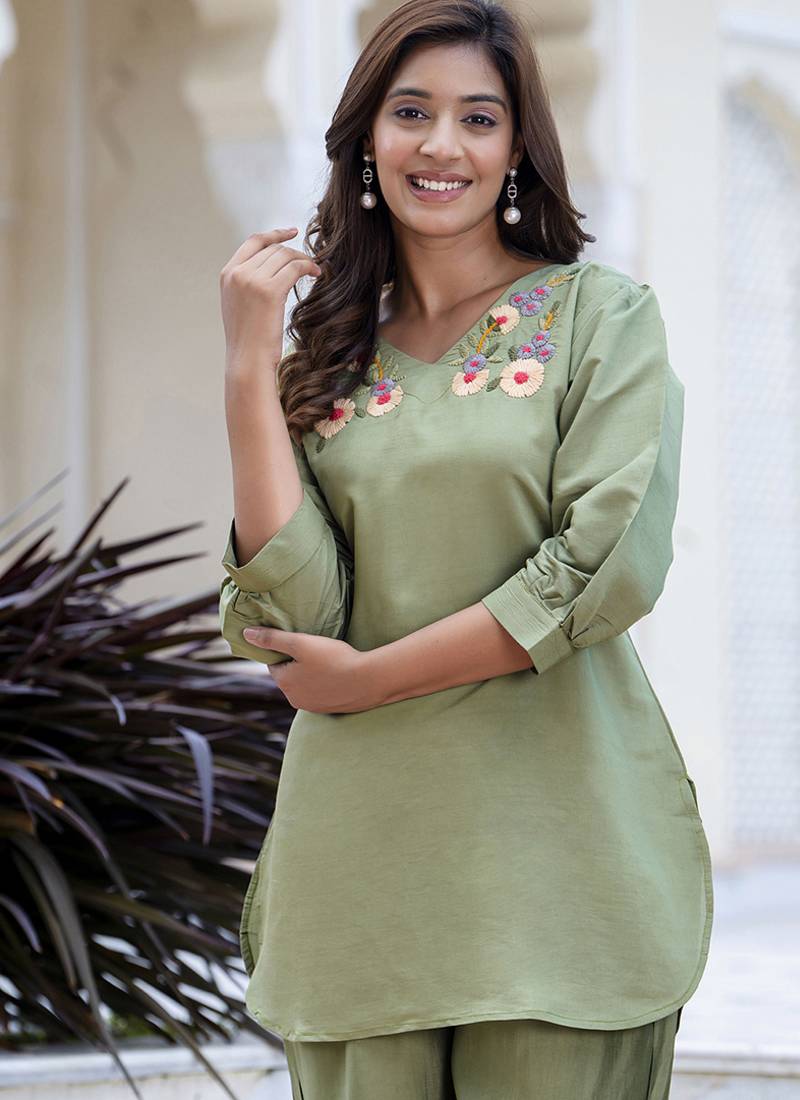 | Product Name | Silk Blend Pista Casual Wear Hand Work Kurta Set | |