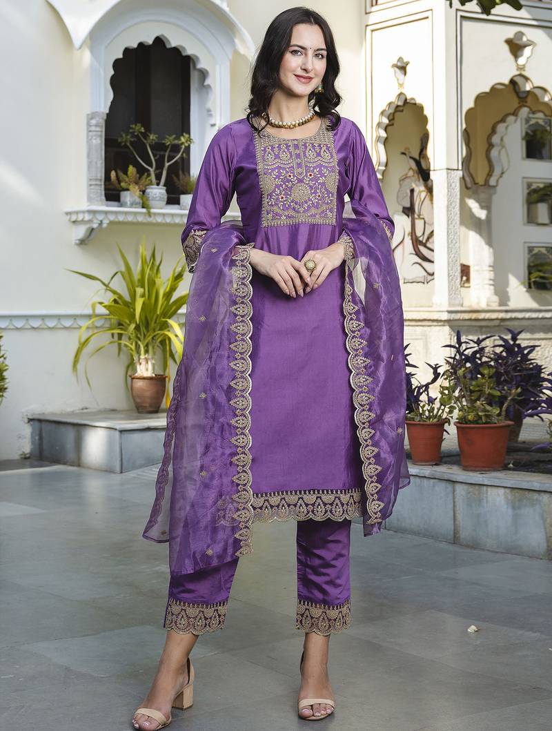 | Product Description | Rich And Royal, This Purple Silk Blend Salwar Suit Showcases Exquisite Embroidery Work For A Touch Of Sophistication. Designed For Comfort And Style, It’s Perfect For Both Casual And Semi Formal Settings. You’ll Look Stunning And Confident Every Time You Wear It. |