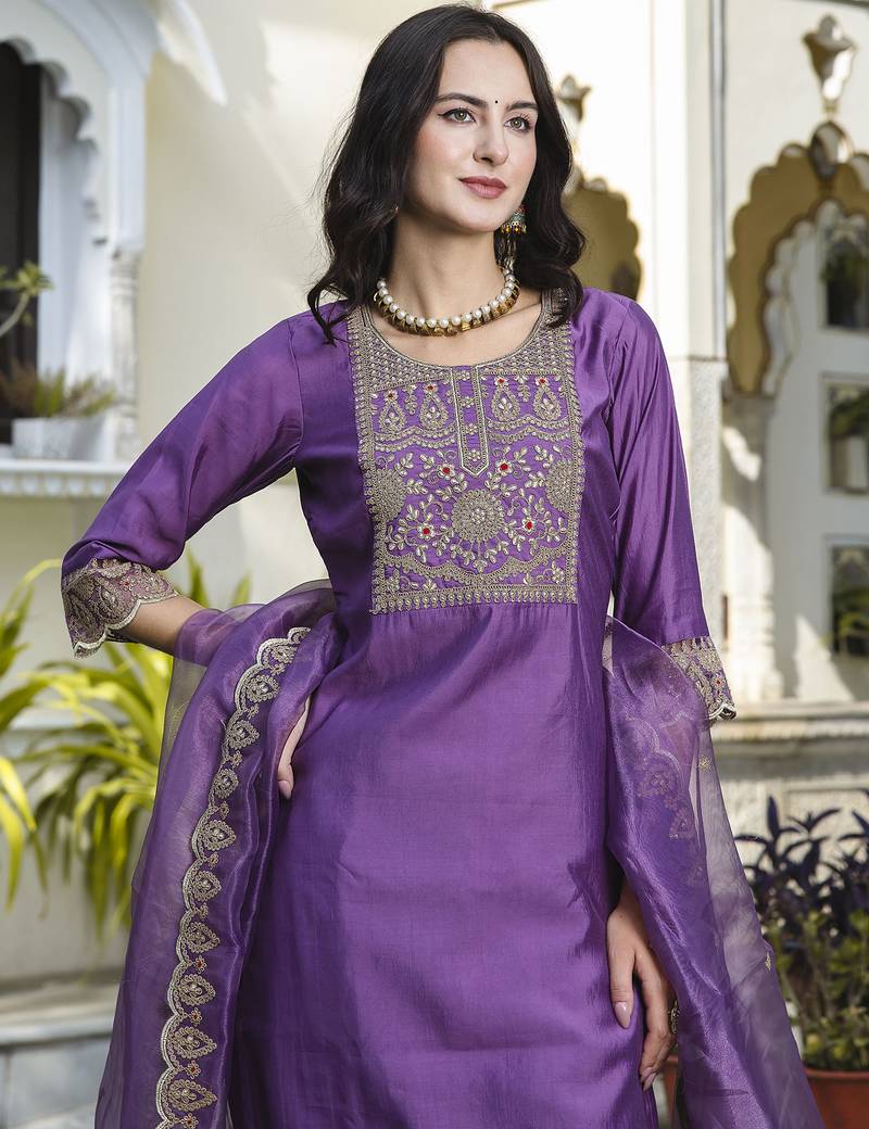 | Product Name | Silk Blend Purple Casual Wear Embroidery Work Kurta Set | |