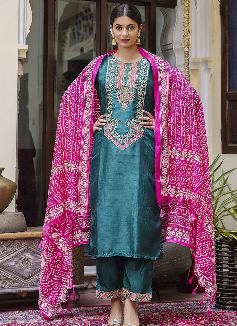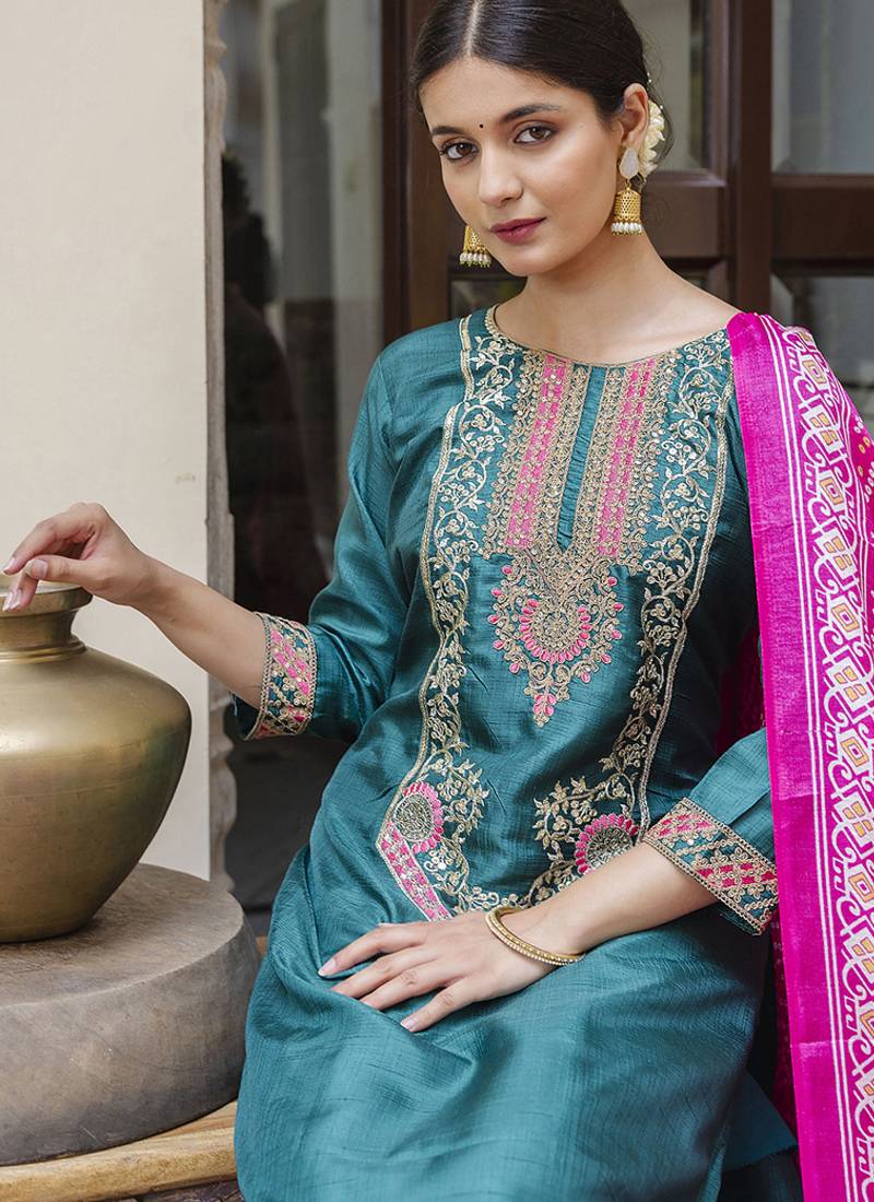 | Product Description | Silk Blend Rama Ocassional Wear Embroidery Work Readymade Salwar Suit |