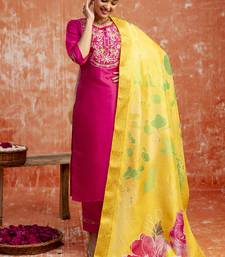Silk blend rani pink festival wear embroidery work kurta set