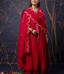 Silk blend red designer wear embroidery work readymade anarkali suit