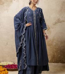 Silk blend teal designer wear embroidery work readymade anarkali suit