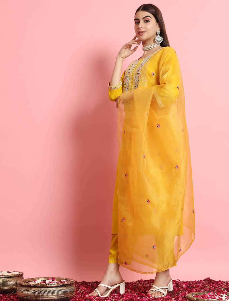 | Product Name | Silk Blend Yellow Casual Wear Embroidery Work Kurta Set | |