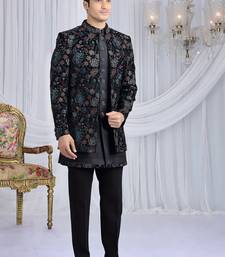 Velvet silk black wedding wear computer thread work readymade indo western