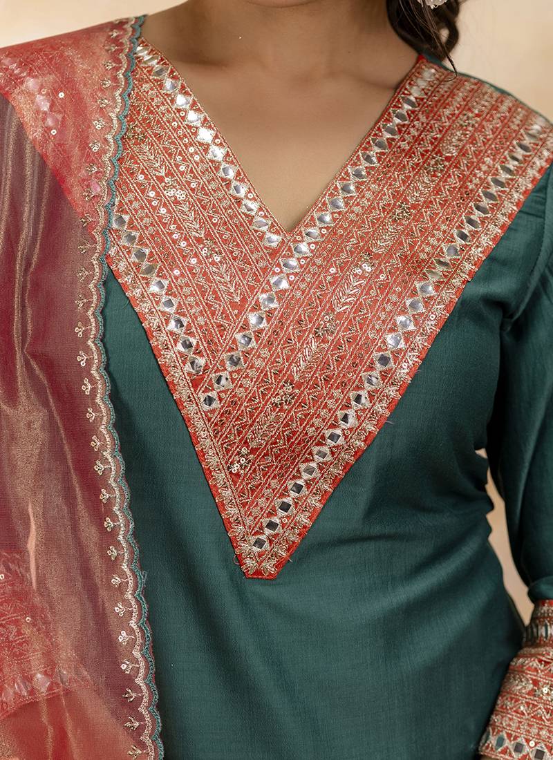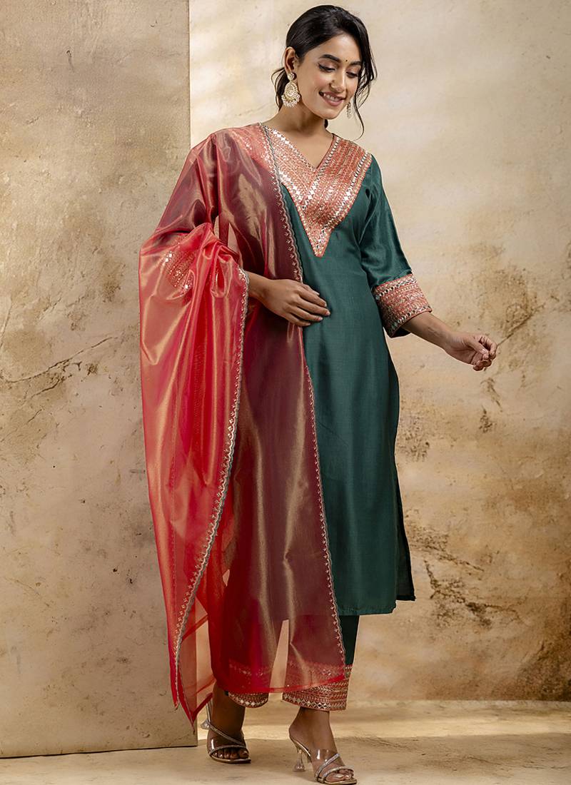 | Product Name | Viscose Rayon Bottle Green Casual Wear Embroidery Work Kurta Set | |
