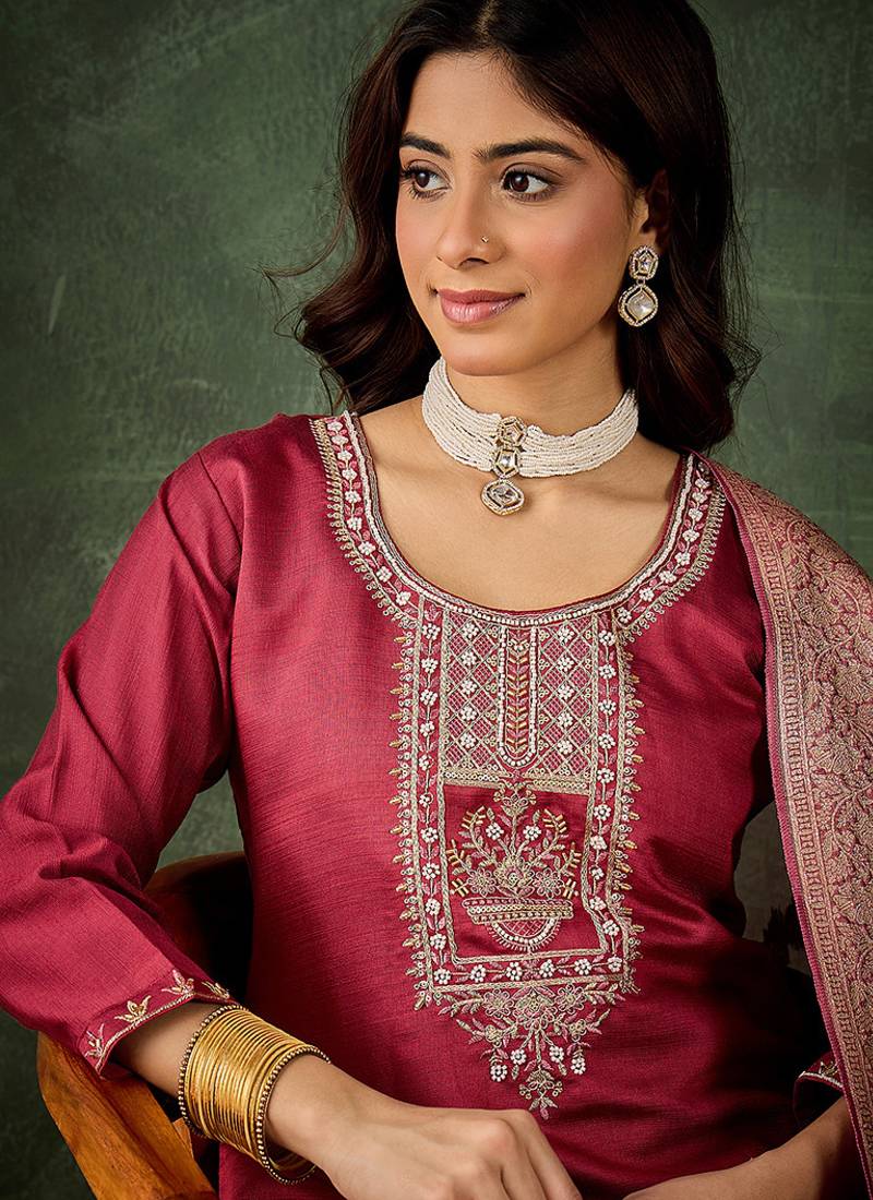 | Product Name | Viscose Rayon Pink Casual Wear Embroidery Work Kurta Set | |