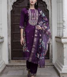 Viscose roman silk deep purple ocassional wear embroidery work kurta set