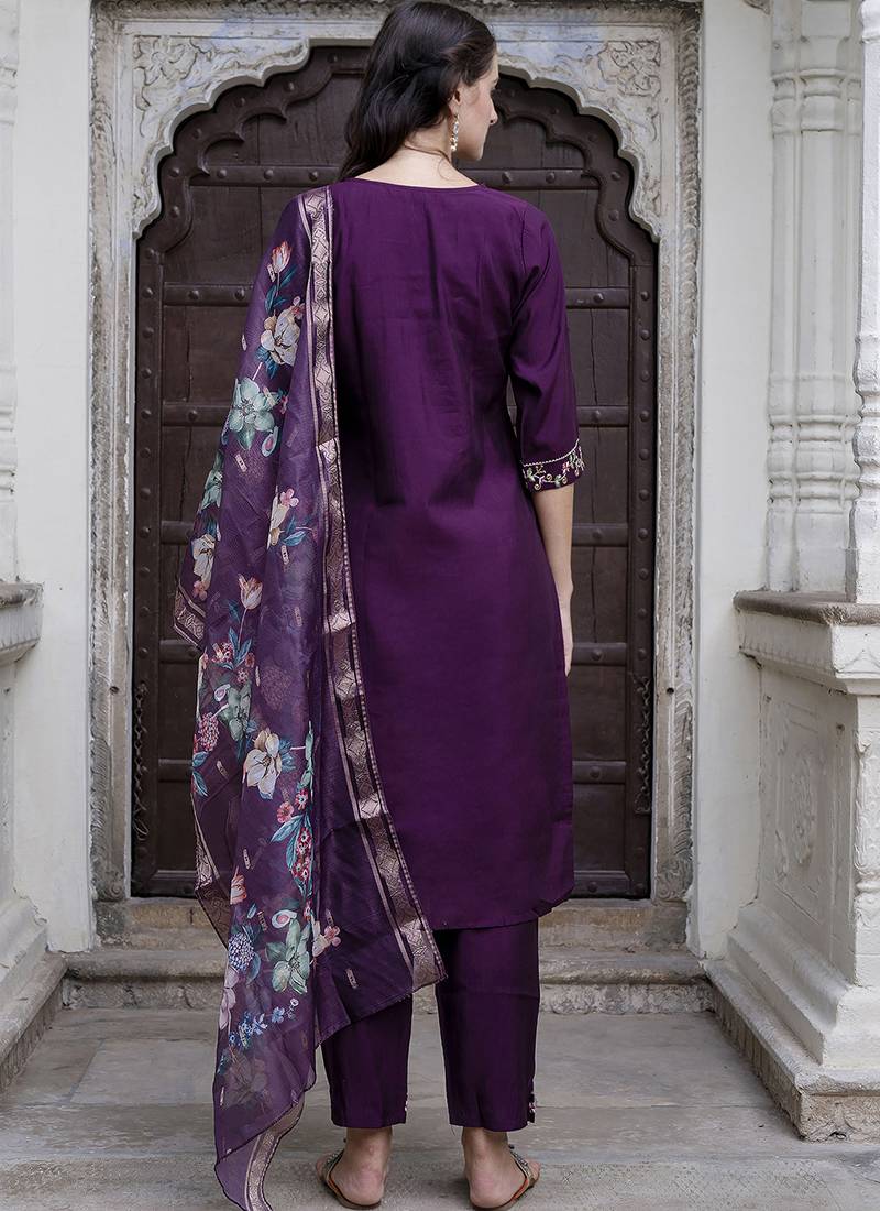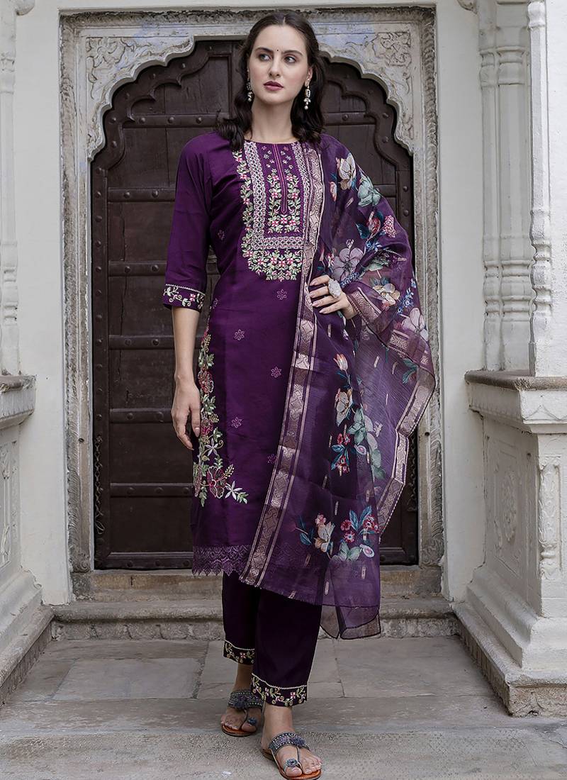 | Product Description | Viscose Roman Silk Deep Purple Ocassional Wear Embroidery Work Readymade Salwar Suit |