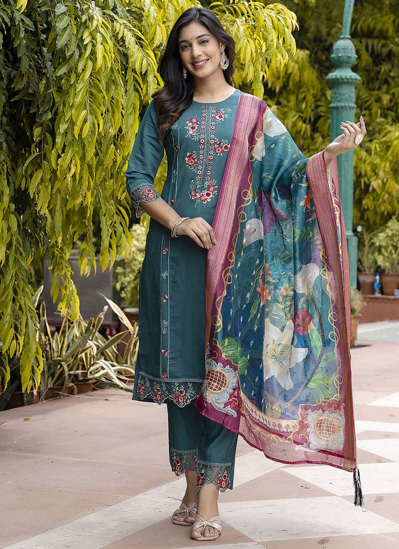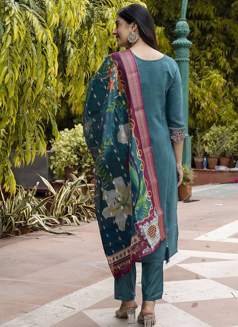 | Product Description | Viscose Roman Silk Teal Green Festival Wear Embroidery Work Readymade Salwar Suit |