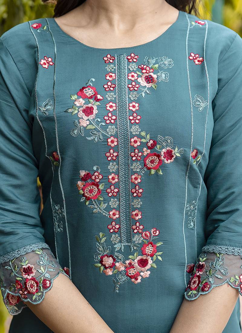 | Product Name | Viscose Roman Silk Teal Green Festival Wear Embroidery Work Kurta Set | |