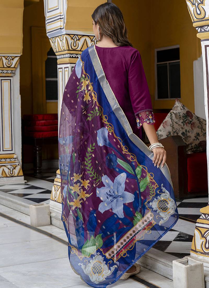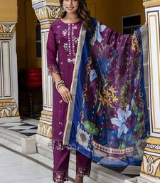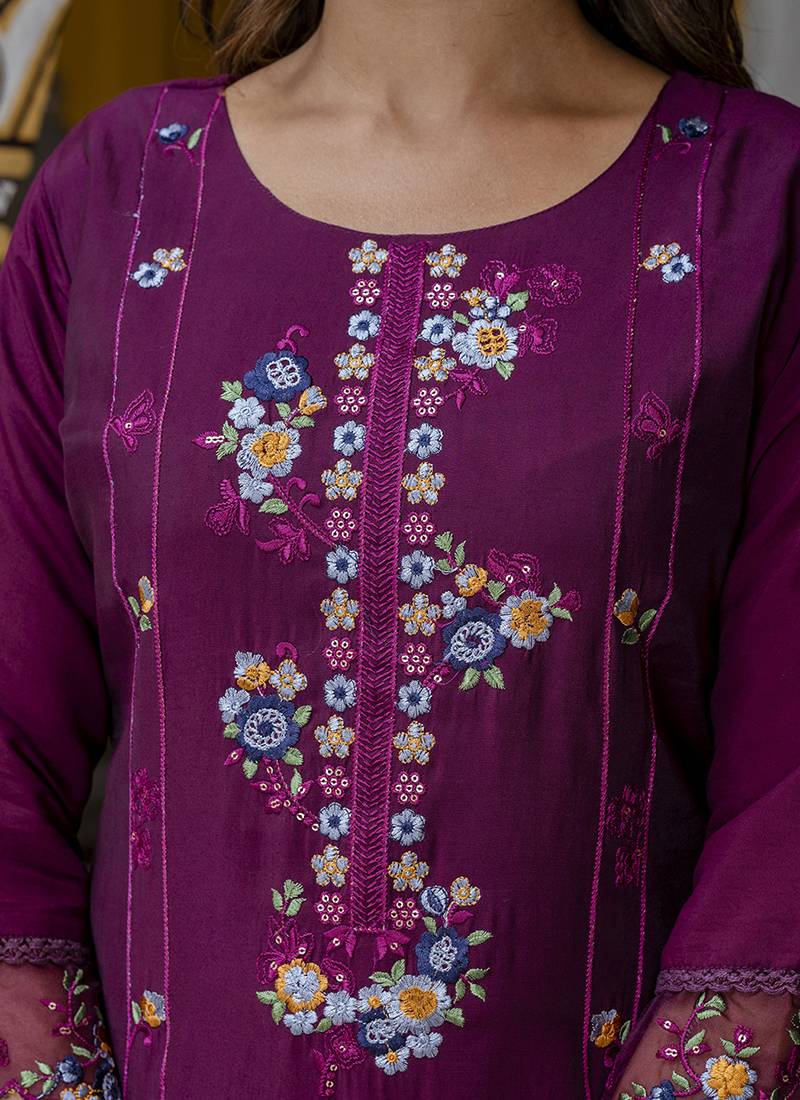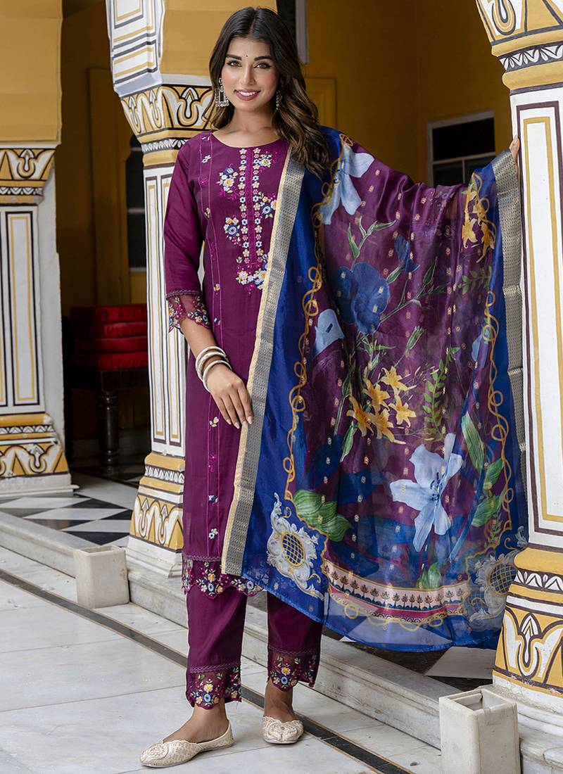 | Product Description | Viscose Roman Silk Wine Festival Wear Embroidery Work Readymade Salwar Suit |