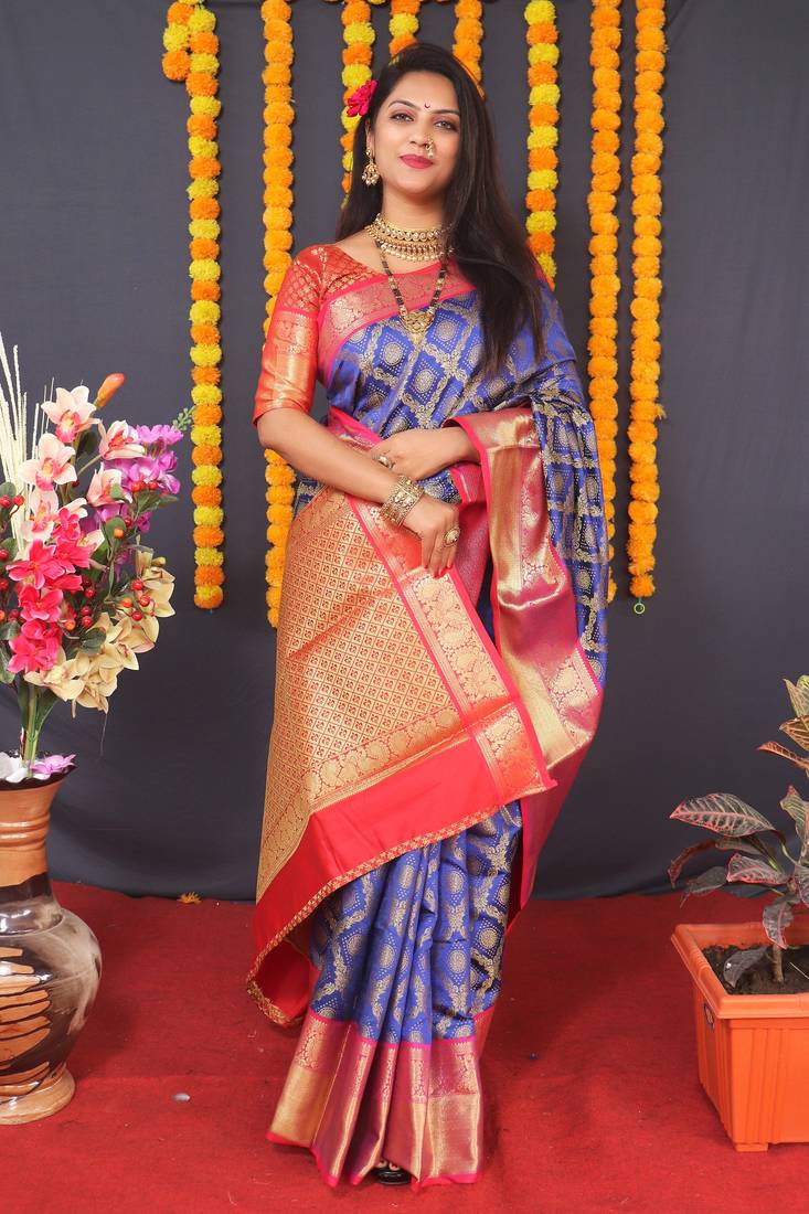 | Product Name | Blue Hand Woven Pure Kanchipuram Silk Saree With Blouse | |