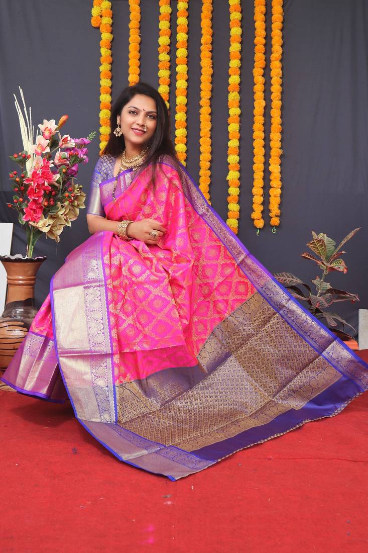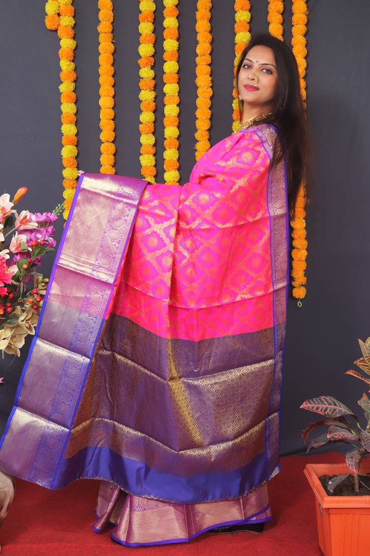 | Product Name | Pink Hand Woven Pure Kanchipuram Silk Saree With Blouse | |