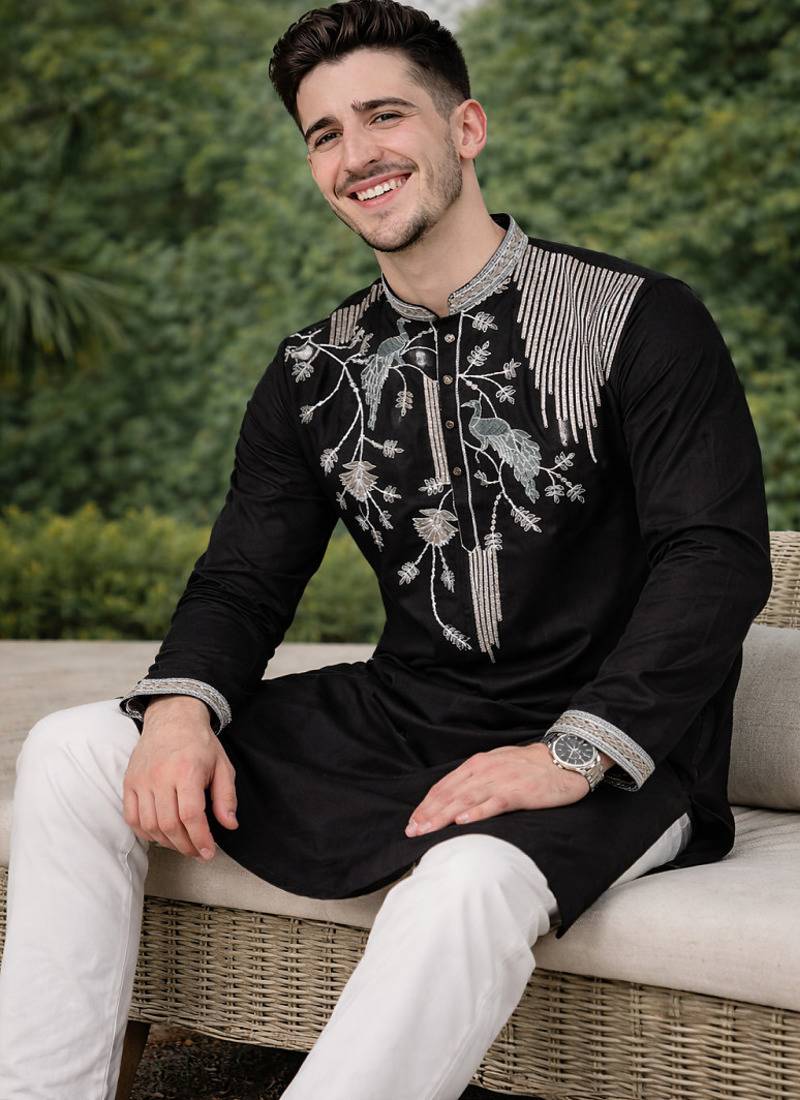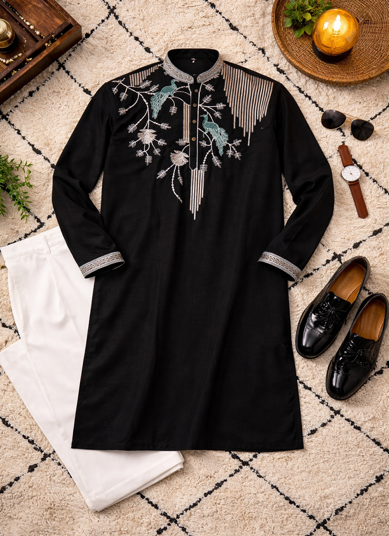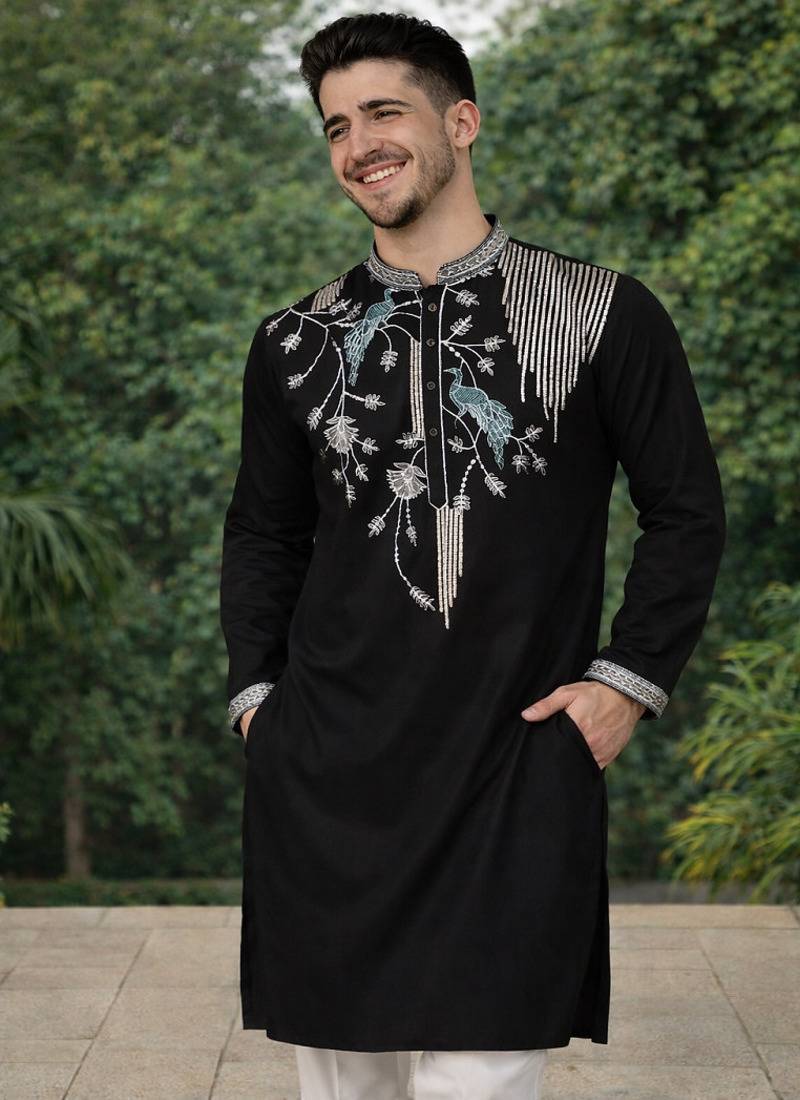 | Product Name | Black Color Embroidery Sequence Work Viscose Silk Kurta Payjama Set | |