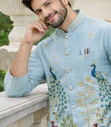 | Product Name | Blue Color Embroidery Work Satin Kurta Koti Set | |