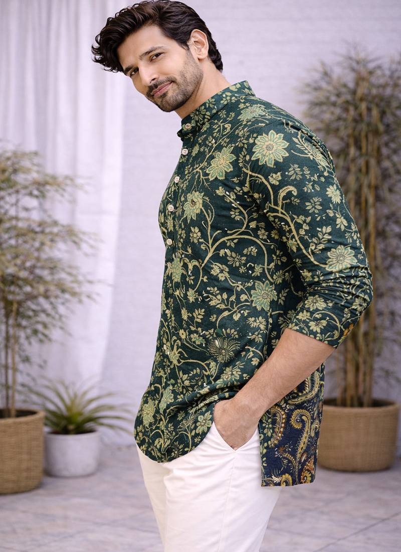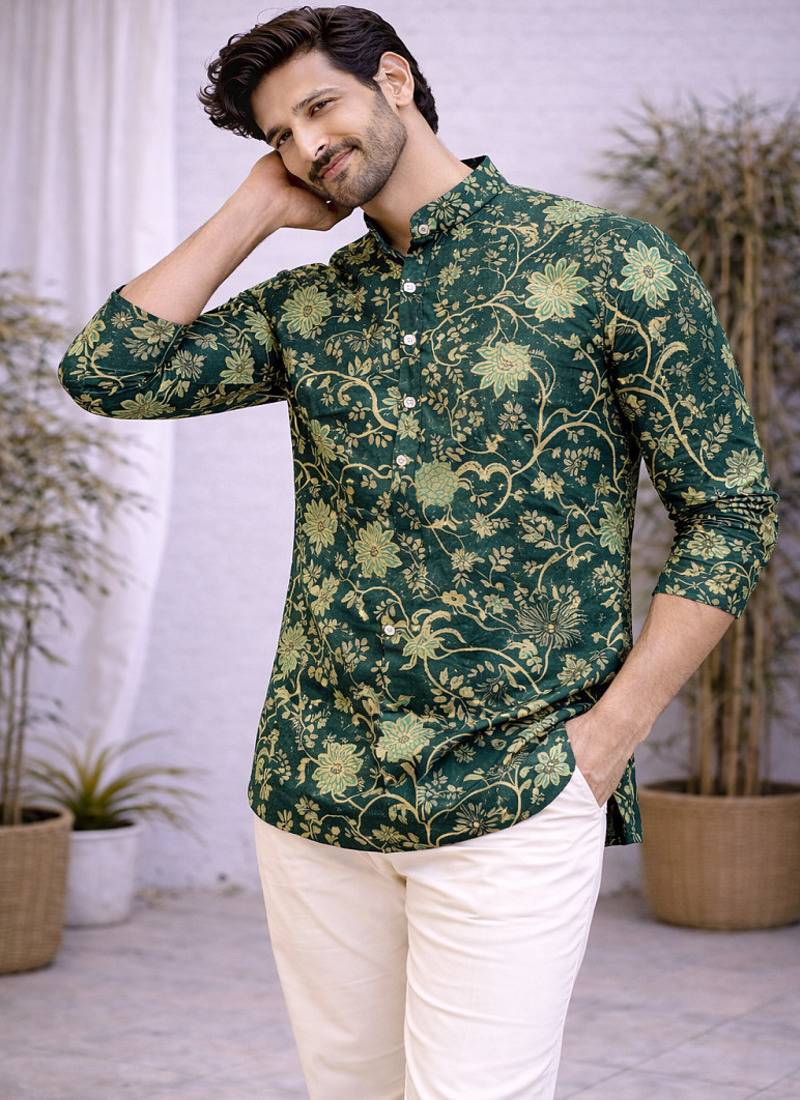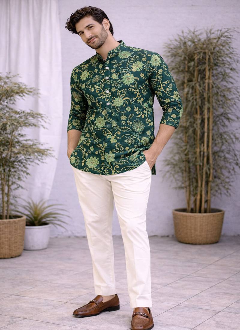 | Product Name | Green Color Printed Cotton Short Kurta Payjama Set | |