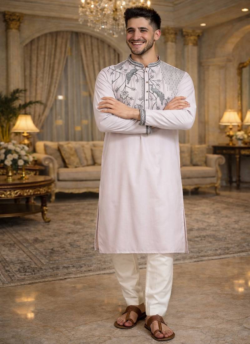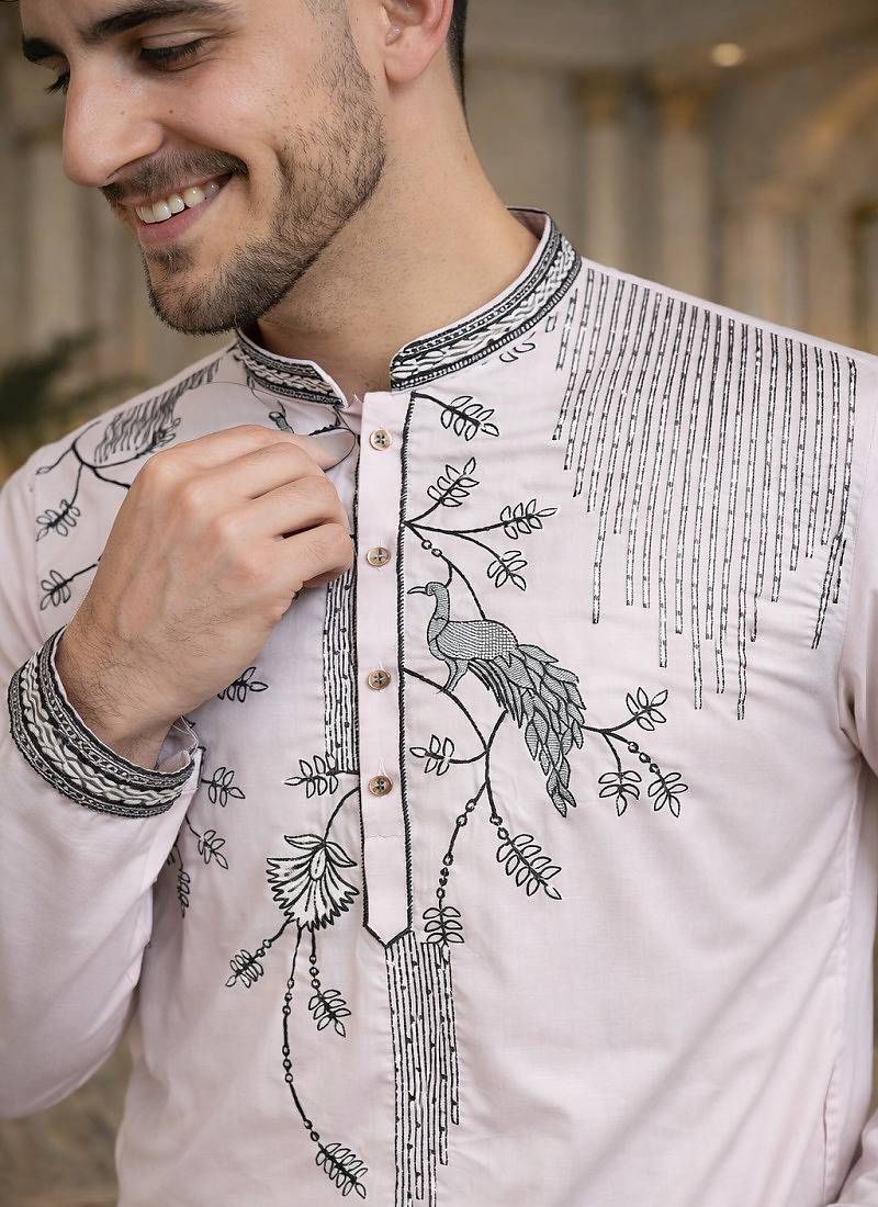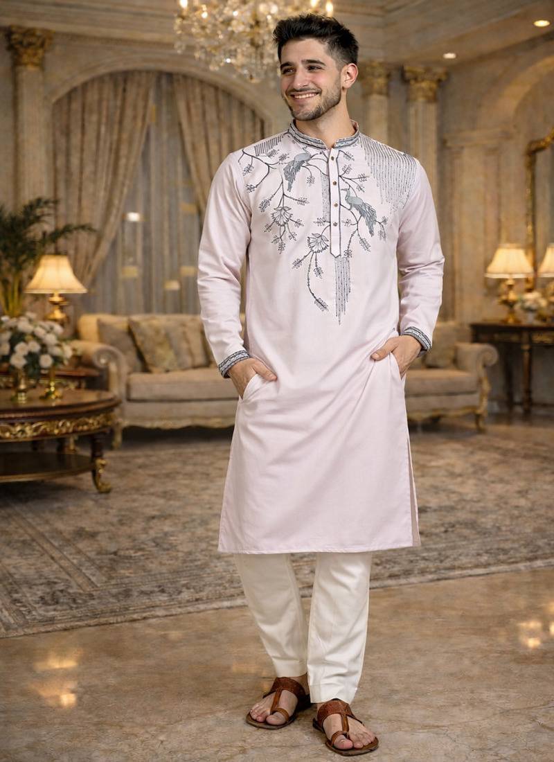 Light pink color embroidery sequence work viscose silk kurta payjama set