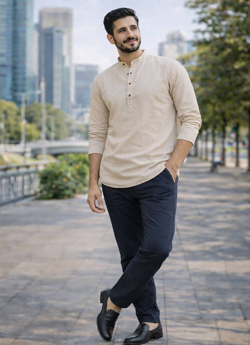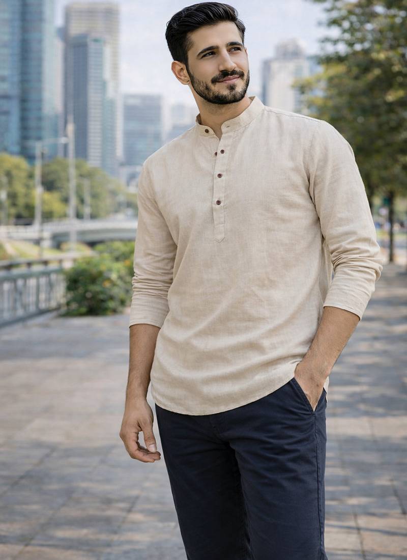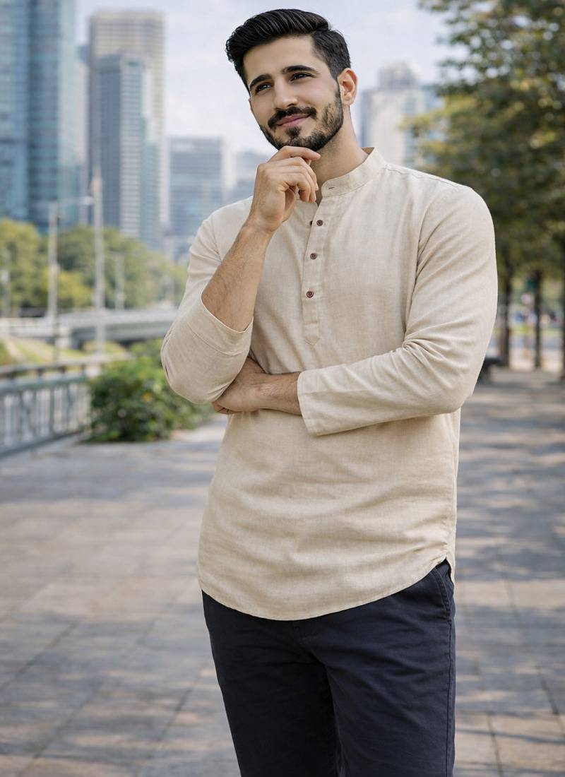 | Product Description | Short Kurta For Every Function, Celebration, And Casual Wear, Crafted In Khadi Linen With Wooden Buttons. |