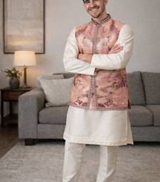 | Product Name | Peach Color Plain Slub Silk Kurta Koti Pant Set | |