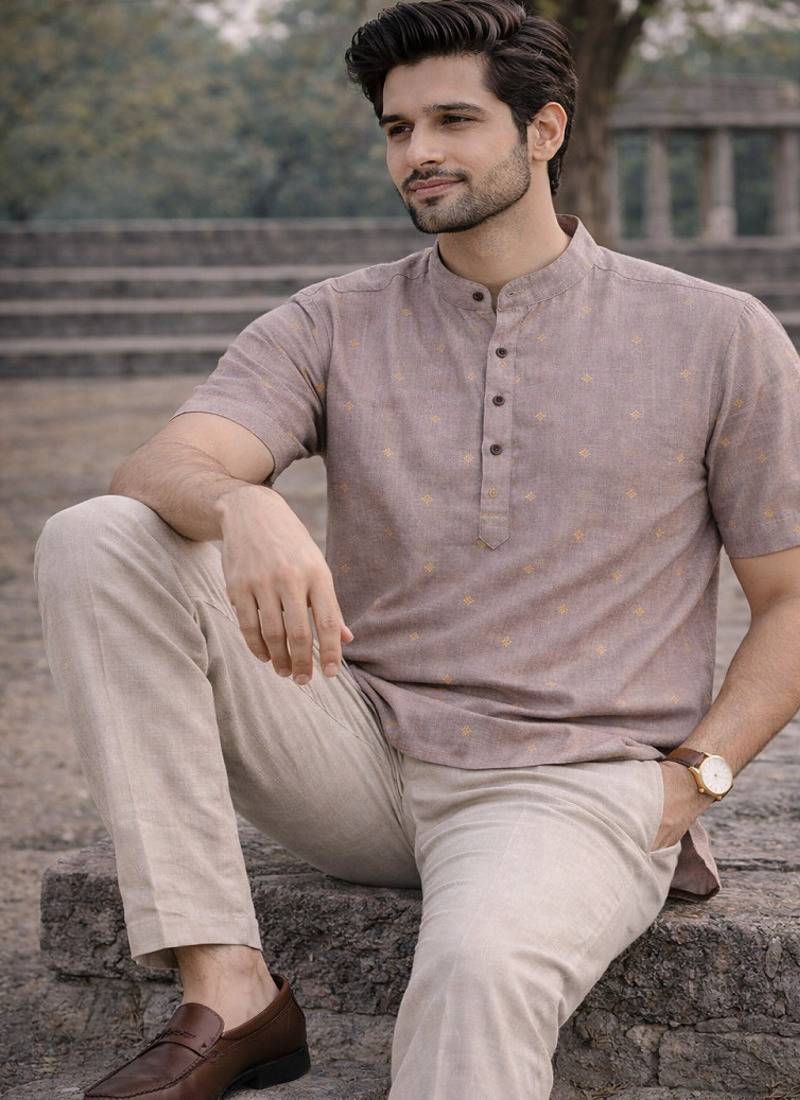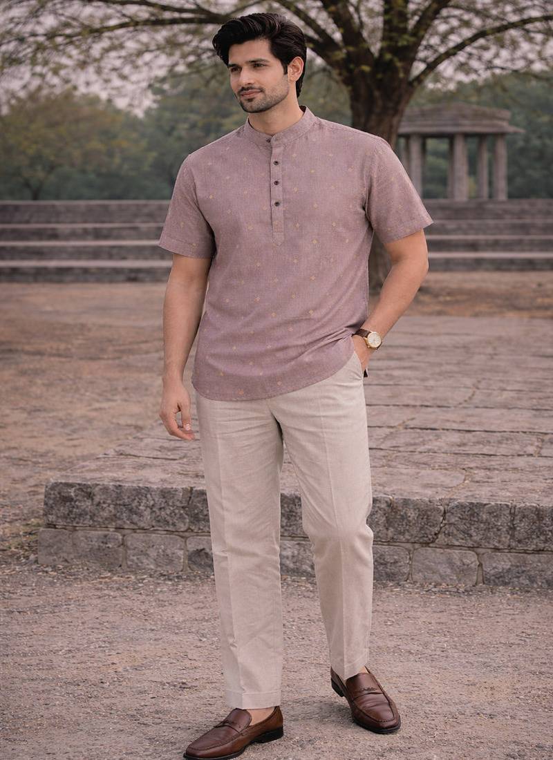| Product Name | Purple Color Jaquard Butta Work Linen Cotton Short Kurta | |