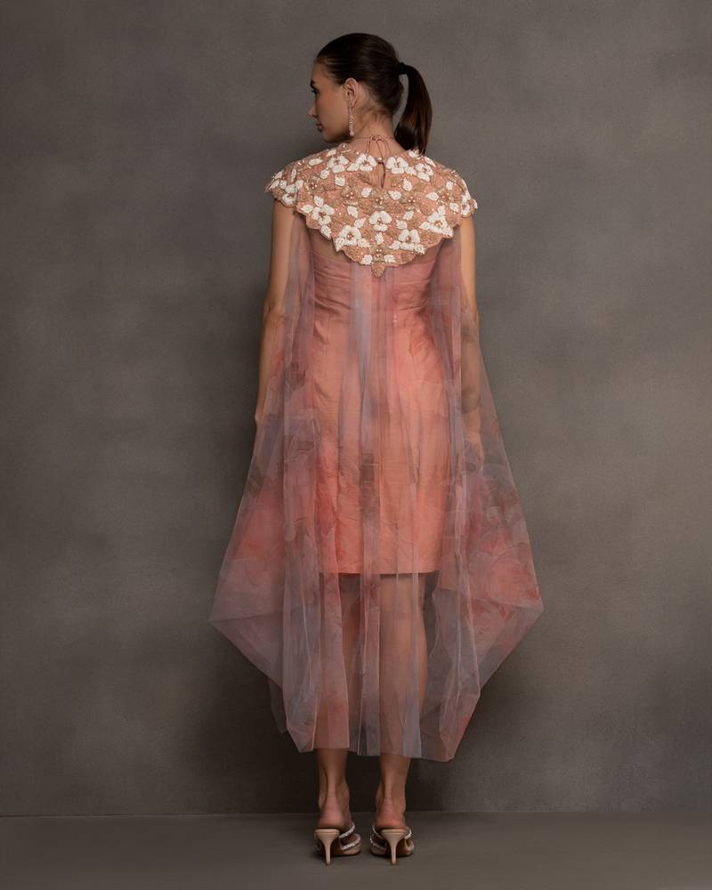 Peach embroidered net dress