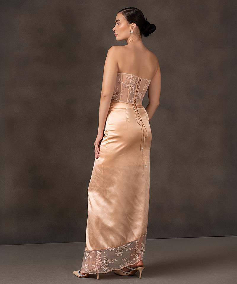 | Product Name | Peach Plain Silk Skirt With Embroidered Blouse And Cape | |
