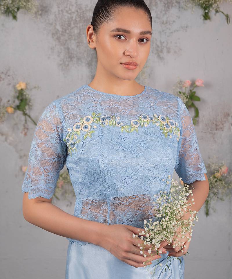 | Product Name | Blue Embroidered Silk Co Ord Set | |