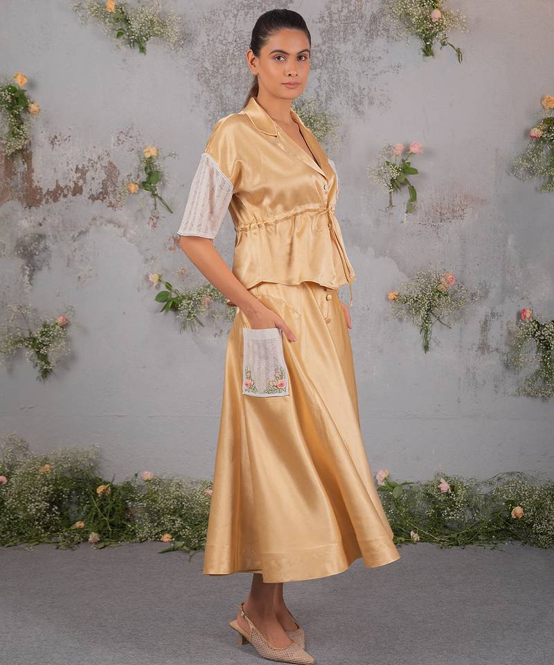 | Product Name | Gold Embroidered Silk Co Ord Set | |