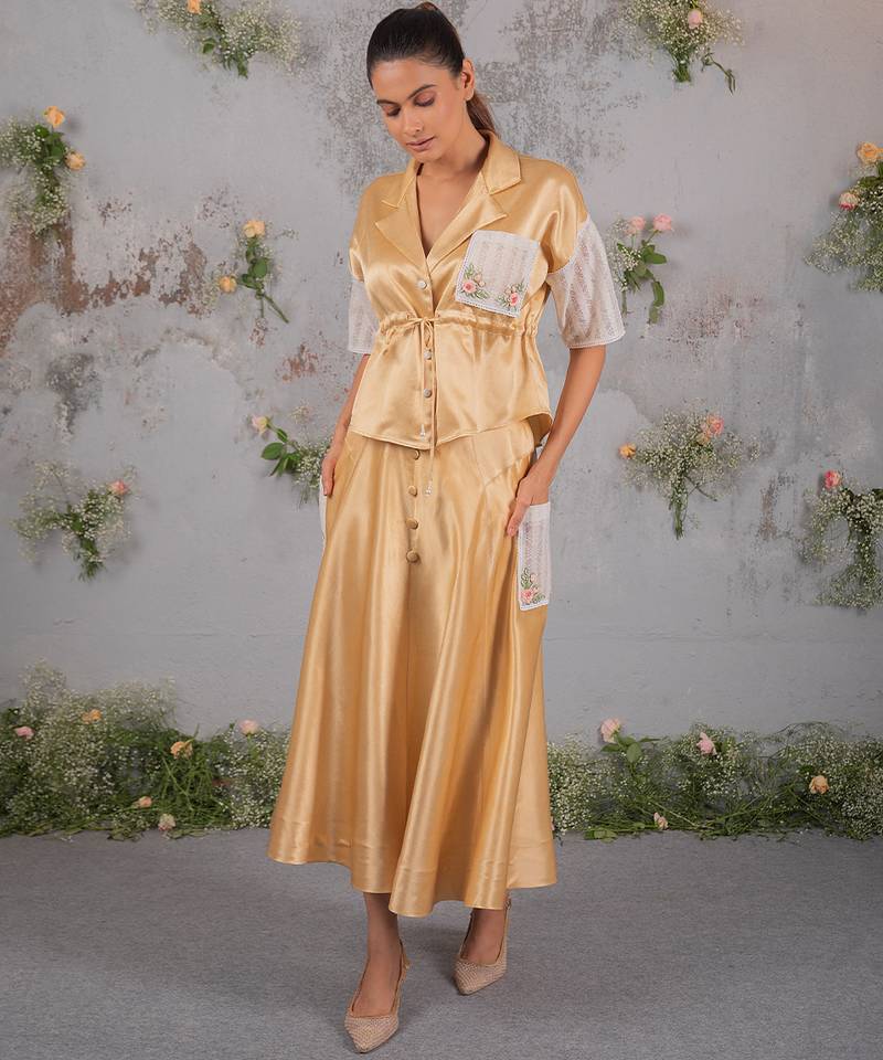 Gold embroidered silk co ord set