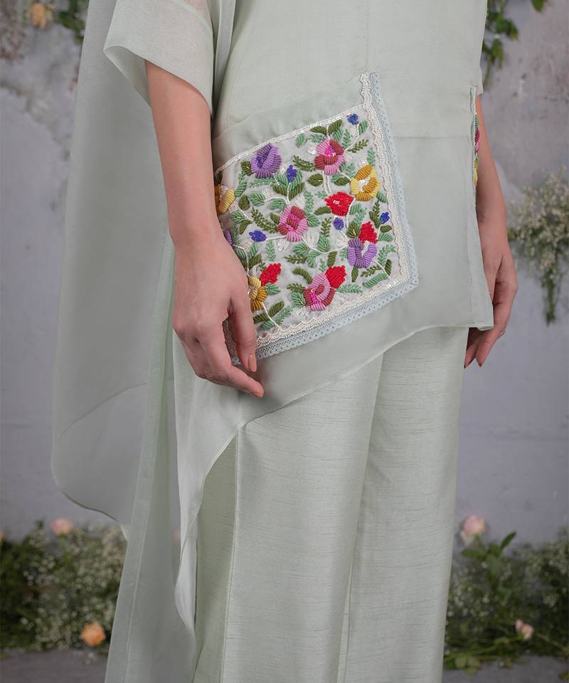 Green embroidered organza co ord set