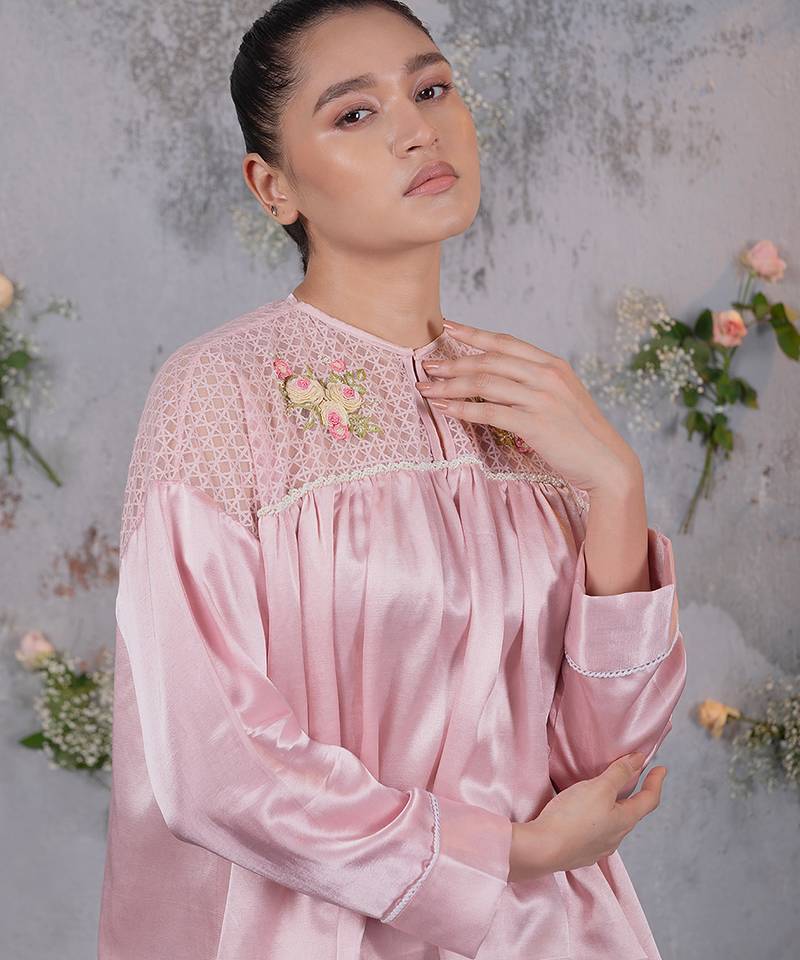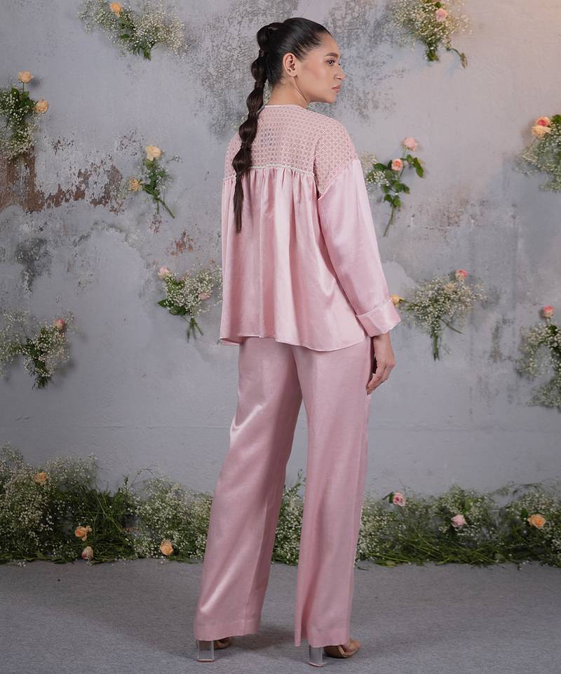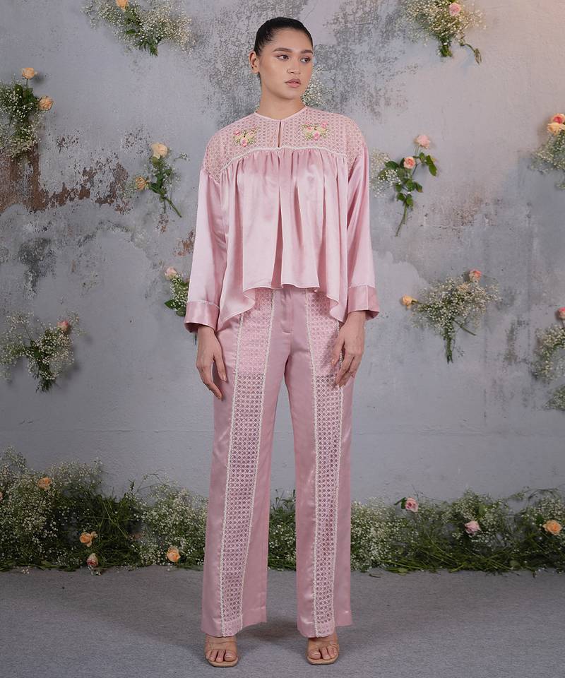 | Product Name | Pink Embroidered Silk Co Ord Set | |