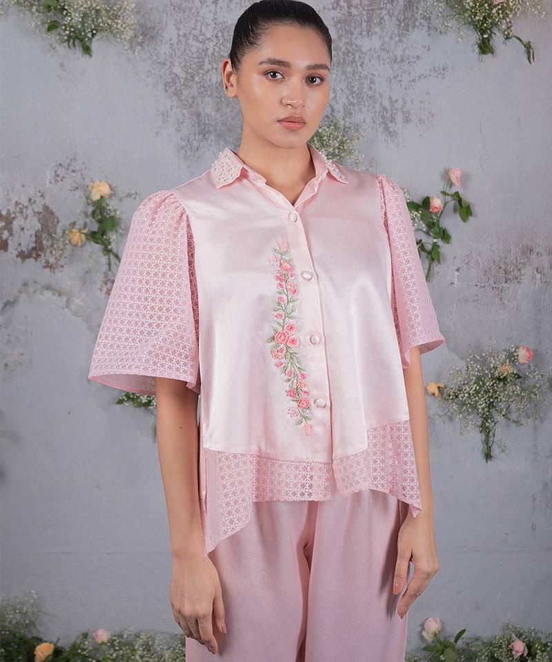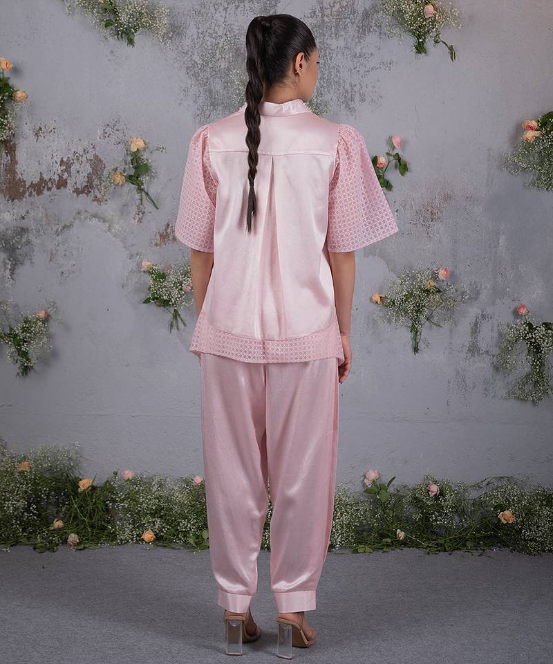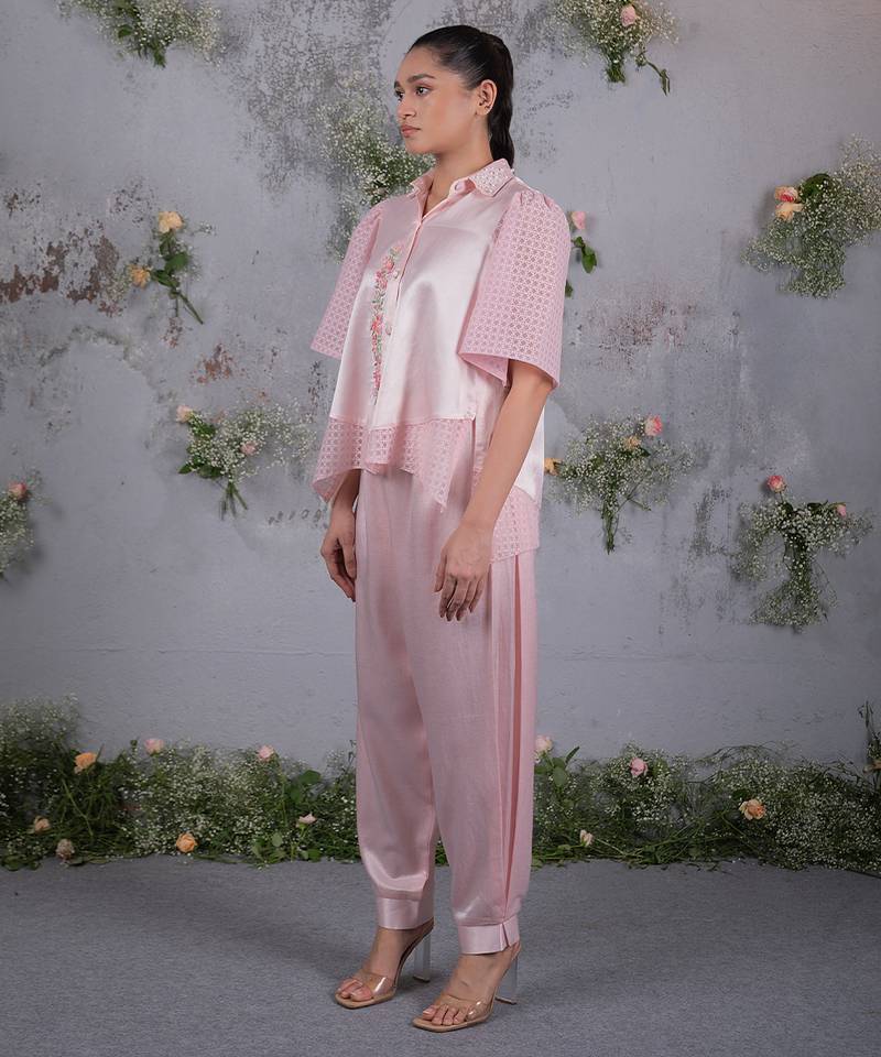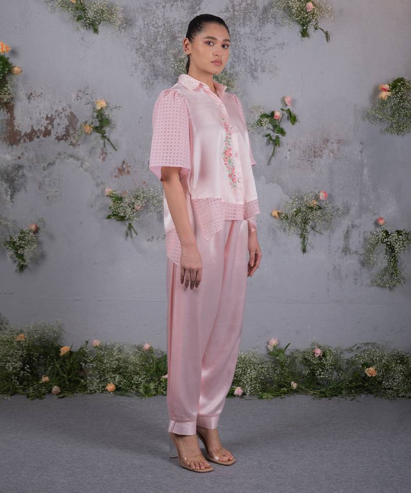 | Product Name | Pink Embroidered Silk Co Ord Set | |
