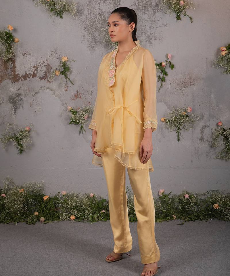 | Product Name | Yellow Embroidered Satin Co Ord Set | |