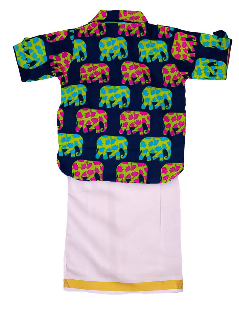 | Product Name | Blue Elephant Print Cotton Kurta With Lungi Set For Boy | |