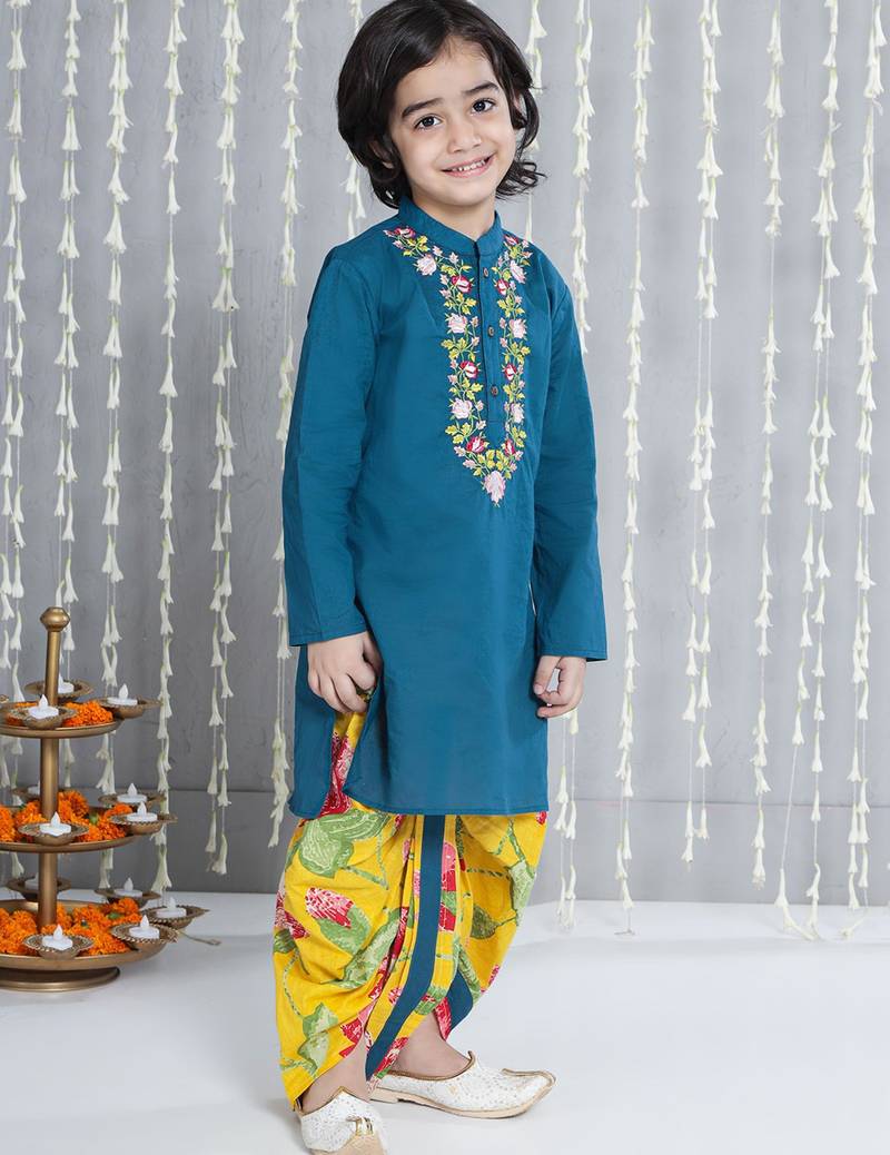 | Product Name | Blue Embroidered Cotton Kurta With Dhoti Set For Boy | |