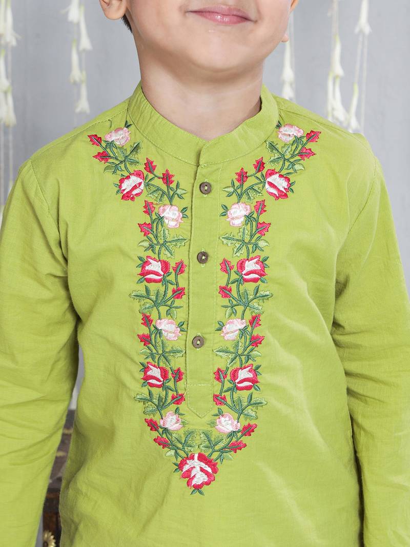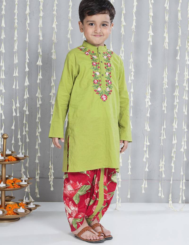 | Product Name | Green Embroidered Cotton Kurta With Dhoti Set For Boy | |