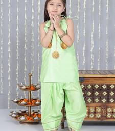 Green gotta flower patch silk blend kurti with salwar set for girls