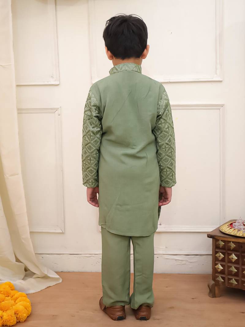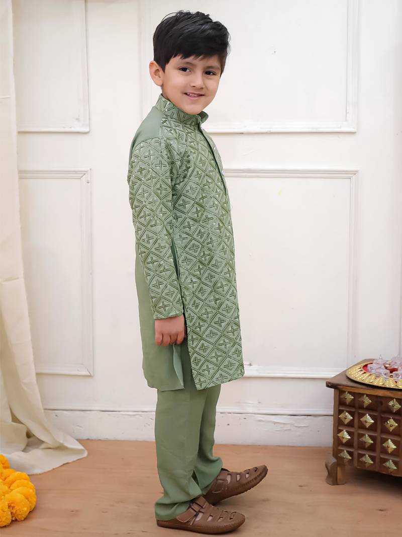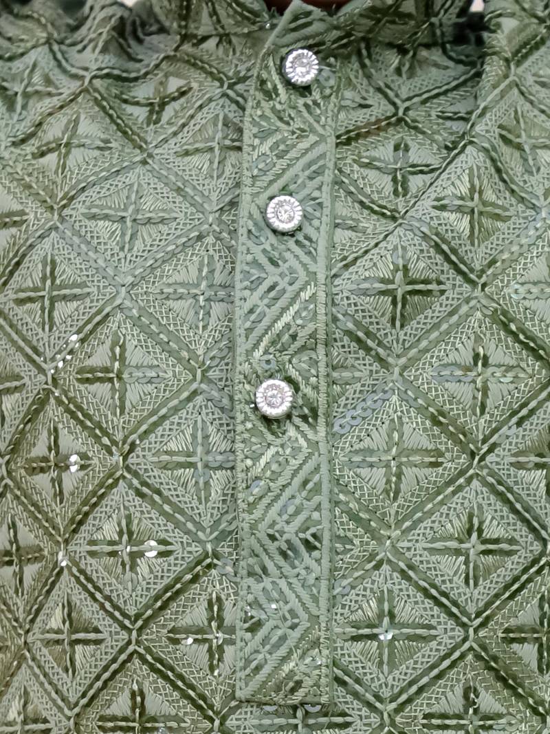 | Product Name | Green Sequins Work Rayon Kurta Pyjama Set For Boy | |