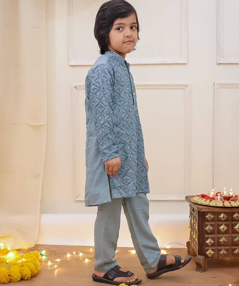 | Product Name | Grey Sequins Work Rayon Kurta Pyjama Set For Boy | |