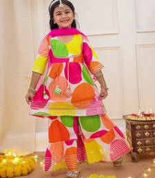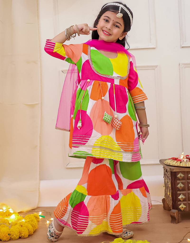 Multi printed cotton kurti with sharara and dupatta set for girls